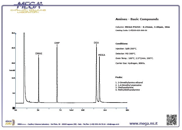 甲基二乙醇胺(MDEA)的氣相色譜分析柱-MEGA-PS255 請(qǐng)下載:胺類堿性化合物的分析.pdf