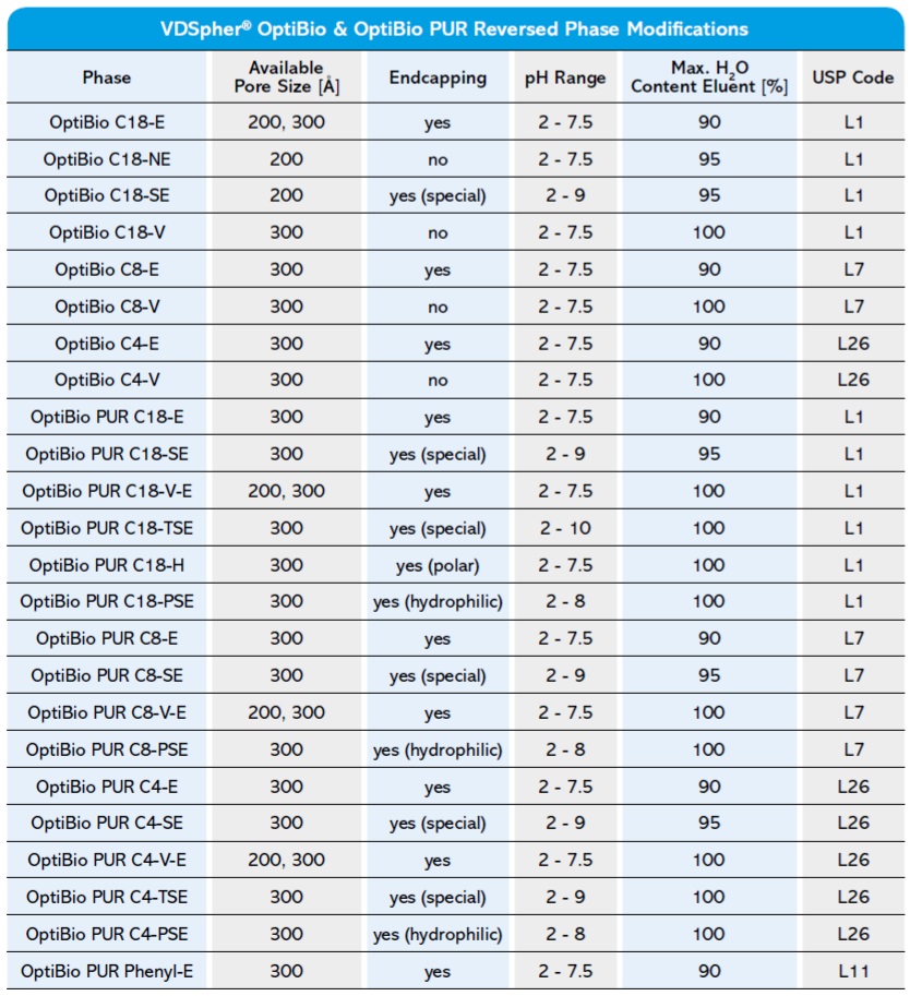 德國VDS Optilab色譜技術(shù)公司是具有31年開發(fā)和生產(chǎn)液相色譜柱經(jīng)驗的企業(yè),VDSpher OptiBio系列生物分離液相色譜柱是運用反相液相色譜分離生物大分子化合物,產(chǎn)品品種和優(yōu)化的選擇更全面,達到和超越世界領(lǐng)先的Vydac公司同類產(chǎn)品。