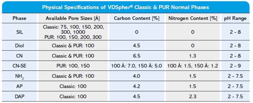 VDSpher 經(jīng)典/精睿正相液相色譜填料
