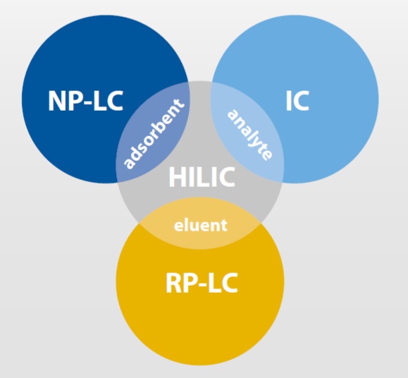 傳統(tǒng)的反相液相色譜對(duì)強(qiáng)極性和親水性小分子物質(zhì)的保留和分離能力較弱,流動(dòng)相需要采用高比例的水溶液,高比例的水相會(huì)使固定相反浸潤和ESI-MS檢測器的靈敏度下降。HILIC可以很好解決此問題,是常規(guī)反相液相色譜的補(bǔ)充,使在反相液相色譜分離保留很弱或沒有保留的物質(zhì),得以實(shí)現(xiàn)很好的分離。
