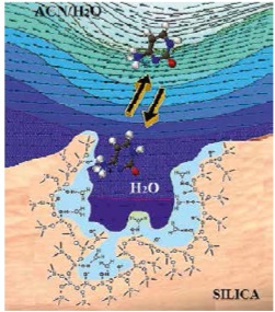 HILIC的機(jī)理包括三個(gè)方面:①分配②離子交換③偶極-偶極相互作用,試驗(yàn)表明:HILIC的保留機(jī)理包含氫鍵作用、偶極作用和靜電作用等多種次級(jí)效應(yīng),很難區(qū)分開來。