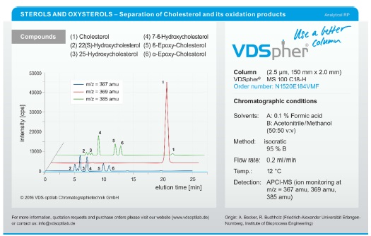 德國VDS Optilab色譜技術(shù)公司具有30年開發(fā)和生產(chǎn)液相色譜柱經(jīng)驗的企業(yè),特別是運用反相液相色譜分離小分子化合物,產(chǎn)品品種和優(yōu)化的選擇更全面。2017年推出適用于LC-MS/MS分析的VDSpher MS系列液質(zhì)分析柱,分為親水性和疏水性兩大品種: